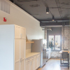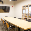 An open studio was created in the main space, with custom-designed mdf/maple workstations arranged in a modular layout, driven directly by the existing structural steel column grid and beams, and the east wall window spacing. Three formerly enclosed offices were converted into two conference rooms. A new custom-designed, geometric, maple-framed interior window opens up the large conference room and connects to daylight and views. A break area was created with a large kitchen and seating provided at an RKA custom-designed table. Custom area rugs were created throughout the space, utilizing recycled content carpet tiles. New energy-efficient LED lighting was provided throughout the space. Minimal interventions were required to make this space function well for the RKA Team, providing a creative new home for the firm, while conforming to a tight project budget and schedule.