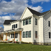 RKA designed this new 2-story Modern Farmhouse home on partially wooded vacant lot with two wings splayed on a 135-degree angle. The front of the house wing faces the cul-de-sac while the garage wing faces the side yard. The house is sited on the property to allow for views from the house, rear porches, and patio into the wooded areas at the north and east portions of the site. The open plan of the first floor provides ample entertaining areas in the Living, Kitchen and Dining spaces while also including a private Study, Mudroom, Pantry, Powder Rooms, and attached 3-car Garage and Woodworking Workshop. The wraparound front porch welcomes family and guests while the rear porches and patio provide additional outdoor gathering areas. The new second floor includes a Master Suite, three Bedrooms with full Bathrooms, Laundry, and Library. The simple, yet refined interior finishes of hardwood flooring, cabinetry, and trim, along with the daylight brought in by the many windows around the home, provide a warm, clean, and bright interior environment. The exterior materials include standing seam metal roofs, and board and batten siding in response to the Modern Farmhouse aesthetic. Multiple shed dormers and two-story tall gables provide a human scale to the facades while enhancing the massing of the house.