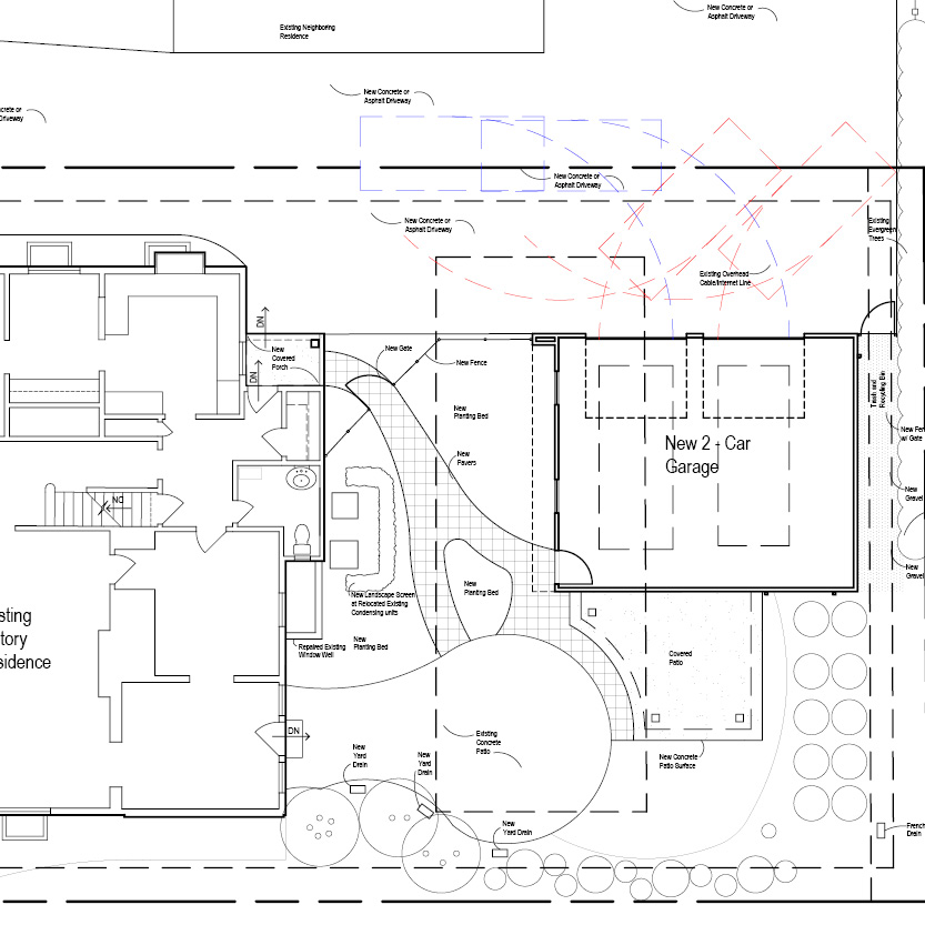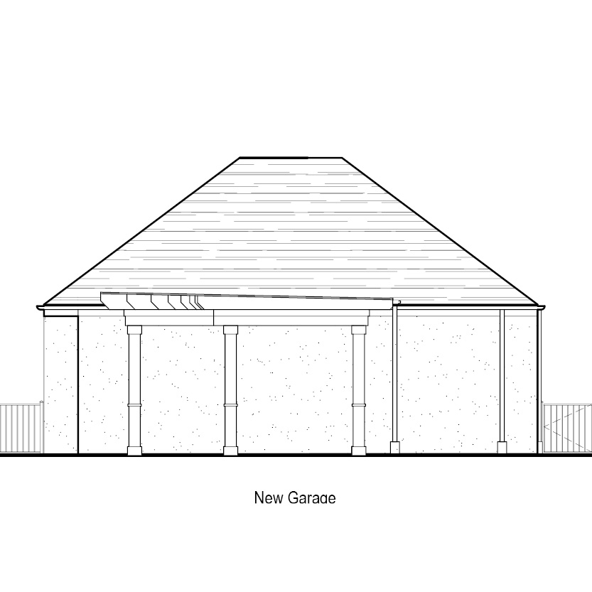 The Client's existing attached garage, with a shared driveway, was located facing the rear of the property. With this configuration, the Clients could not maneuver their vehicles into the garage. RKA was commissioned to develop a design that replaced the garage with a new detached Garage that allowed easy access for vehicles, and expanded storage space. The new detached Garage is more in keeping with the 1920's Central Bexley neighborhood context. Architecturally, the new garage takes its cues from the beautiful French Eclectic style home. The space between the garage and house, and the space behind the new Garage, were re-envisioned to be comfortable outdoor living space. A new Covered Patio, engaged with the rear of the new Garage, is the highlight of the new outdoor living space, with a pergola-like timber structure. A new Rear Porch, and renovations to the rear of the home where the previously attached garage was connected, were also part of the project scope.