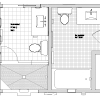 In the Primary and Hall Bathrooms, existing walls adjacent to vanities were removed, to open the small bathroom spaces, and to provide space for larger vanities. In the Primary Bathroom, a superfluous pocket door to the laundry room was removed, providing space for a new, large custom tile shower that included a custom soap and shampoo recess and seat/ledge. The entry door to the Primary Bathroom from the bedroom was also replaced with a new pocket door, adding efficiency to the tight space. New lighting, tile flooring, and other finishes add a refined, updated feel to each bathroom.