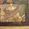 Various areas of the murals were painstakingly cleaned to reveal the original colors and detail of the painted figures. Through a process of careful exposure windows and core samples, the team discovered that the original finishes of the room included warmer colors, glazing and gold detailing. These images show exposures of original finishes and a rendering of the proposed restored courtroom. |