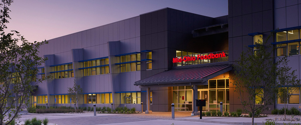 When Mid-Ohio Foodbank hired Rogers Krajnak Architects for their facility expansion project, the organization’s goals went beyond merely increasing their capacity to distribute food. The Foodbank wanted the facility to accommodate twenty years of projected growth; to provide increased logistical efficiency for the handling of food; to increase the capacity to accommodate community volunteer groups; to accommodate programs for nutrition education; to promote an egalitarian, collaborative working environment for staff; and to adhere to rigorous sustainable design and construction practices sufficient for the requirements of LEED Gold level certification by the USGBC.