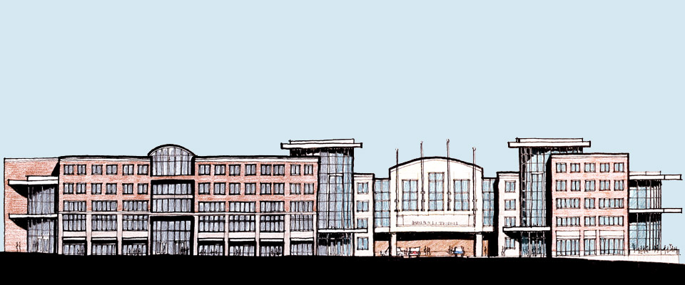 Rogers Krajnak Architects, Inc. completed a conceptual study of a four block area for a 480,000 square foot mixed use development including retail, residential, hotel and office space. The study included three parking structures that would accommodate 700 cars. The buildings at the west edge of the site were designed to create a gateway to the community. Each building included first floor retail to continue the pedestrian activity that exists in the galleries and restaurants in the east end of the site. A bookstore anchored the first floor of the structure adjacent to Trinity Lutheran Seminary and Capital University. |
