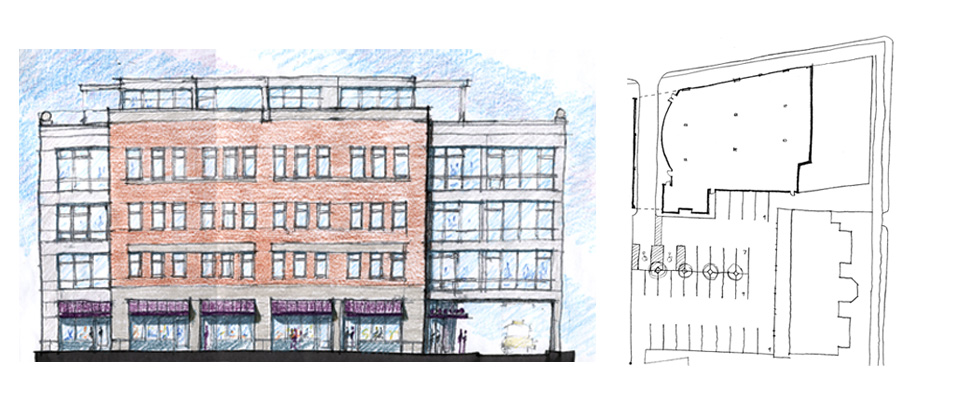 The project is the conceptual design study for a new mixed-use structure in the Short North District in Columbus, Ohio. The building would include first floor retail and/or restaurant space, four floors of residential loft style condominiums and an optional underground parking garage. The conceptual study analyzed the potential building footprint, retail area, allowable building height and the potential quantity and layout of residential units. Conceptual designs for the exterior facades were illustrated as well as a site plan, floor plans and a building section. |