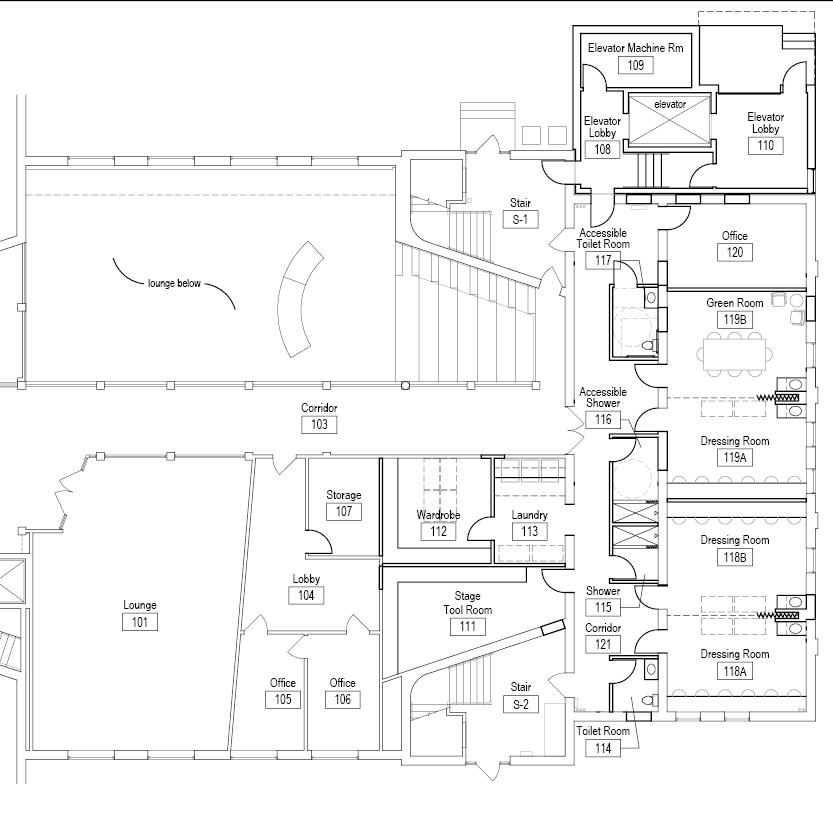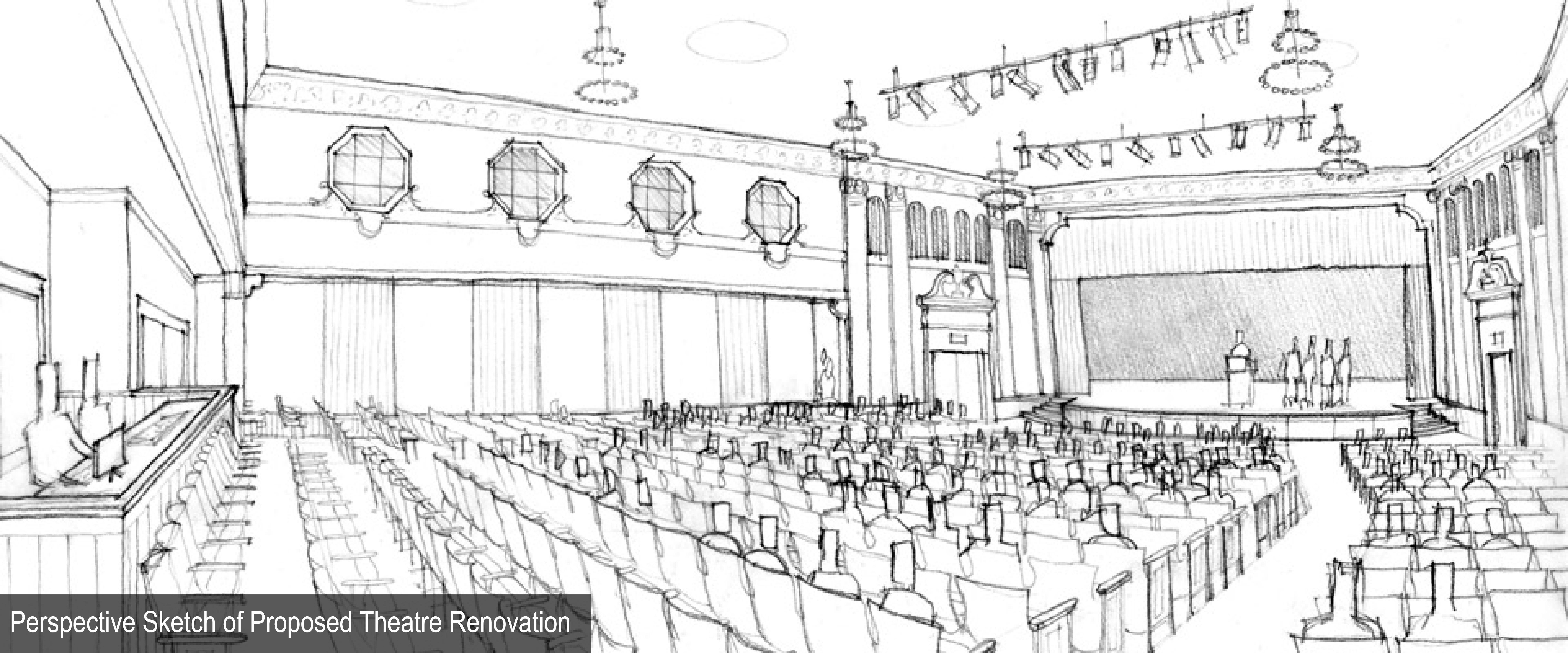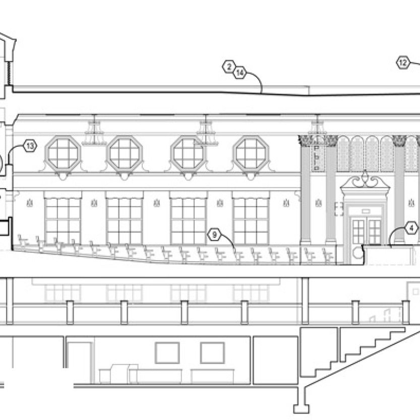Rogers Krajnak Architects was commissioned to develop a Conceptual Design for Matesich Theatre on the campus of Ohio Dominican University, a liberal-arts institution in Columbus, Ohio. The renovation of the theatre includes upgrades to the Audience Chamber to provide additional seating, audio/visual upgrades, sound isolation improvements, an expanded fly-space, as well as plaster and woodwork restoration. In addition to the theatre, the first floor will be renovated to include new dressing rooms, green rooms, offices, restrooms, and showers, with direct access to the stage above. A new two-story addition is also proposed on the north side of the theatre that accommodates a loading dock, elevator, and elevator lobbies to allow for performers and patrons to access the stage and various other floor levels within Matesich Theatre.