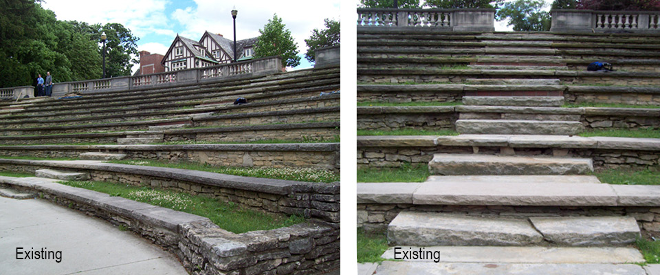 The Browning Amphitheater is located in the heart of The Ohio State University campus, adjacent to Mirror Lake and the South Oval. The amphitheater was originally completed in 1926 to provide a venue for outdoor drama performances, particularly the works of Shakespeare. Over the years the venerable amphitheater has also been used for musical performances, speakers/lectures, and as a study space for students. The stone seating, steps, walls, walkways, and the electrical system have fallen into disrepair over the years. Rogers Krajnak Architects is collaborating with a design team led by the planning and landscape architecture firm EDGE to complete the required repair and restoration work. The historic integrity of the amphitheater will be protected and maintained as part of the restoration effort.