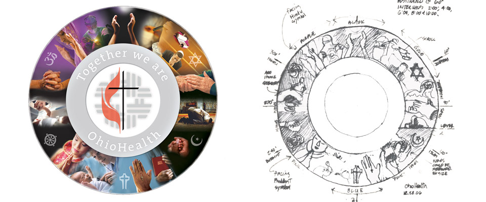 OhioHealth commissioned Rogers Krajnak Architects, Inc. to create elements and environments that convey the message that OhioHealth is a faith based organization that welcomes, employs and serves people of all faiths. The project recognized OhioHealth's United Methodist heritage, while including images of and symbols from the five major religions of the world: Buddhism, Christianity, Hinduism, Islam and Judaism. The design of the project was based on common elements within each religion. An important element in each religion is light. Light was used to illuminate imagery of the "prayer givers and care givers" that are arranged in three compositions - the Rondel, the Ribbon and the Collage. These compositions have been installed at approximately fifty public lobbies and meditation spaces throughout OhioHealth's system.