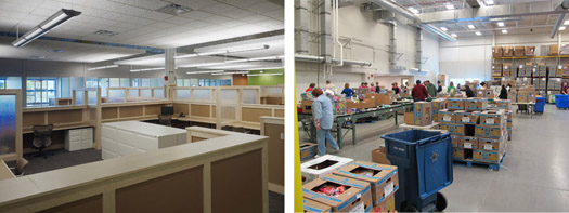 RKA's renovation of an existing warehouse and distribution facility for the Mid-Ohio Foodbank exceeded the client's goal for Silver certification, and has been awarded LEED Gold by the Green Building Certification Institute. This is the first major renovation or new construction of a food bank awarded LEED Gold in the nation. LEED, established by the U.S. Green Building Council, is the nation's preeminent program for the design, construction and operation of high performance green buildings. The project met the rigorous requirements for LEED Gold by utilizing advanced systems and materials that reduce the building's energy and water consumption, incorporating recycled and regionally produced materials, selecting low and no VOC finishes, as well as a number of other sustainable strategies. The result is a building whose reduced ecological impact benefits the environment globally, and whose reduced operating costs benefit the community locally, by enabling the Foodbank to direct more of its resources to feeding hungry families and individuals in central Ohio More information on the Mid-Ohio Foodbank addition and renovation is available on the main project page of our website. |