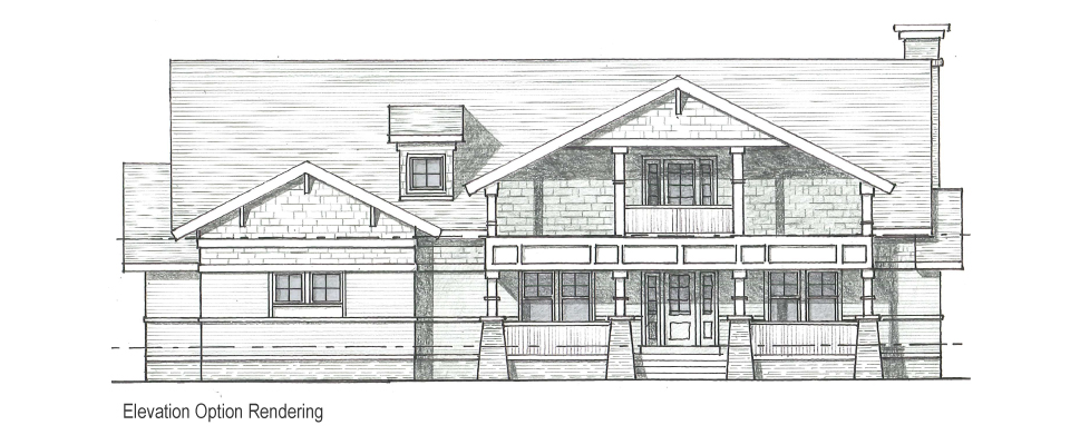 The house is a modern interpretation of an American Craftsman style home. Several design options were created to study the exterior elevations in order to reduce the scale and mass of the home and still give the clients the large, centrally connected open floor plan that they desired.