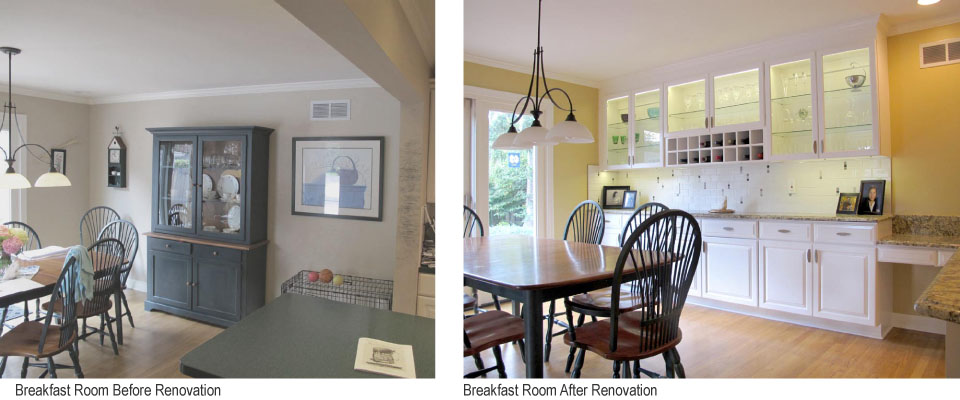 The interior project consists of renovating the existing Kitchen/ Breakfast Room and Mud Room. The Kitchen/ Breakfast Room included new cabinets, appliances, plumbing fixtures, granite counters, crown molding, a custom designed tile backsplash, and new/ existing reconfigured lighting. |