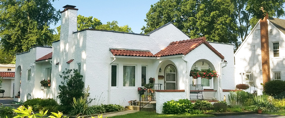 Built in 1935, this distinctive Spanish Colonial Revival style home in Clintonville underwent a transformative exterior restoration led by Rogers Krajnak Architects. As the result of many poorly conceived modifications and repairs over the years, the existing low-pitch roof was failing and causing major water damage to the beautifully preserved interior of the home. The existing stucco, tile roofing and tile parapet copings were also in poor condition. The new membrane roof has an improved slope and drainage configuration, upgraded roof insulation/R-value, and state of the art, watertight flashing details. All of the tile roofing and tile parapet copings were replaced with new tile that matches the original. The existing stucco was sensitively patched and repaired, and replaced in some areas. After completing intensive material research and extensive documentation of the existing conditions, RKA created the design methodology, details and specifications that allowed the restoration contractor to successfully complete this challenging project.