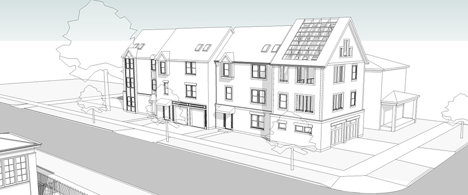 This 1980’s condominium building in the historic Victorian Village neighborhood, just north of downtown Columbus, is currently set back on the site allowing for expansion to the south. This move allows the residence to more closely resemble the character, density, and relation to the street of the surrounding properties. Architecturally, the existing building is simplistic, not relating to the character, style, and massing of near-by historic homes. The client’s goals include; convert the existing attached garage into a Guest Bedroom Suite, create a new attached Garage in the addition, expand the second floor Living Room space, create a second floor Roof Terrace, and incorporating a new Home Office and Private Balcony on the third floor. RKA’s design solution for the addition is highlighted by a simple overall form, massing and fenestration that relates to the existing building. All spaces fit within a rectangular shaped outer volume. On the first floor, the new Garage fills this volume. On the second and third floors the new Living Room and Home Office only partially fill the volume, leaving the remaining area for outdoor space. The rhythm, size, and scale of openings relates to the fenestration of the existing building. Where outdoor space is located the fenestration is in the form of open voids, in lieu of windows. A simple gable roof form is present on the addition, although it is reduced to timber trellis members where it is above outdoor space. The sculptural exterior spaces brings interest and complexity to the simple form of the addition.