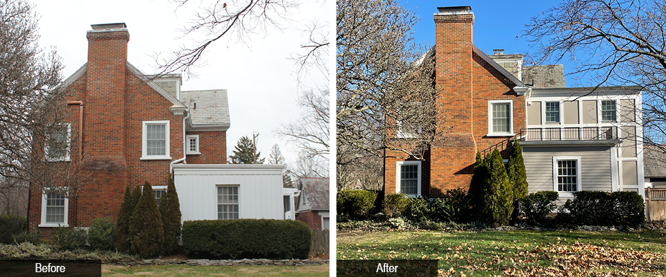RKA was commissioned to undo some unfortunate additions that were previously tacked on to this stately Georgian Style home, while adding more functional and generous spaces in the Master Suite, Study, and Mudroom. By removing the former porch-turned-sunroom and expanding the footprint of the existing first floor study, RKA designed a massing more in keeping with the existing residence. A two-story panel-sided central addition is flanked by a pair of visually similar one-story spaces with lap siding, complimenting by not overshadowing the existing home. The existing second floor Master Bedroom was expanded into the addition and includes a new Laundry Room, Master Closet and generous Master Bath. A new bluestone patio with built in fire pit and new landscaping creates opportunities for outdoor gathering, accessible from the new addition and new sliding doors which are installed in the existing Family Room.