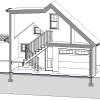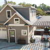 The existing garage of this residence did not serve the owner’s needs, and was in a deteriorating condition. The solution was a new, 1 1/2-story garage, with space for 2 cars, storage, and a studio. The 1st floor of the garage was designed to take advantage of the shared driveway and rear alley access, with doors on both the North and South sides of the garage. The overhead door arrangement allows space for the stair to the second floor, while also allowing access to both vehicles from the entrance door at the north facing secondary gable. The Second Floor serves as a studio and work space for an artist, utilizing a large dormer to increase space and bring in light. A full bathroom on the Second Floor allows future conversion of the space into an overnight guest suite, with an egress compliant window on the south side.