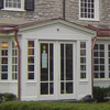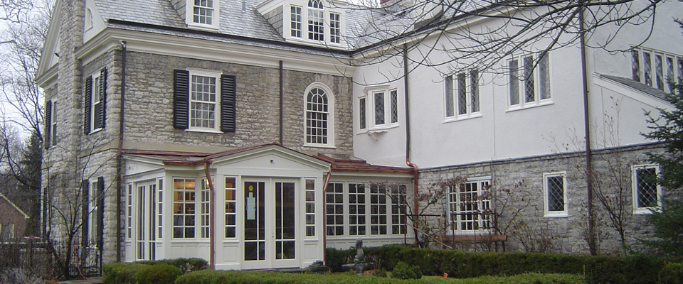 The renovation of this significant historic home includes interior renovation of the master bedroom, third floor bathroom, new kitchen and family room windows and the addition of a new 300 square foot conservatory. The conservatory, strategically located at the edge of the existing formal garden, opens up to the adjacent living room and family room. This allows a better circulation pattern within the house and provides views through the conservatory to the beautiful gardens. The materials of the conservatory include bluestone paver flooring, insulated wood windows, copper roofing gutters and downspouts.
