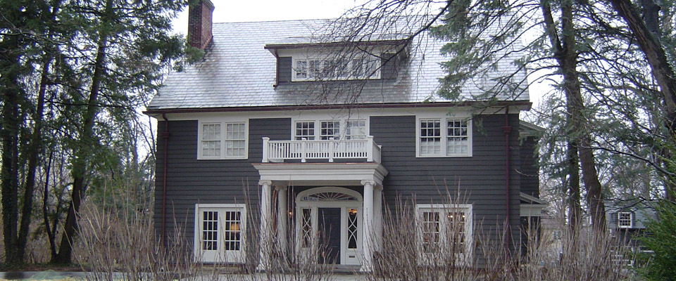 A new front porch replaces an existing under scaled porch. The new porch is designed to coordinate with a new paver and stone entry drive that brings visitor's vehicles to the front entry. With it's appropriate massing and proportions the new porch appears to have always graced the front of this colonial revival residence.