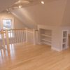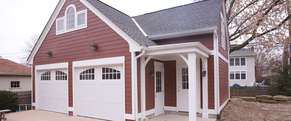 Our client's goal is to create a unique home office space above the existing detached garage in the spirit of a traditional carriage house. This project involves the renovation and a stair/porch addition to the existing detached garage. The new stair addition to the south side allows access to the new second floor study space. This space was designed within the existing reconfigured attic storage trusses which provides a unique, sloped ceiling. New skylights and windows have been added to the space to add desired natural light and enliven the facade.