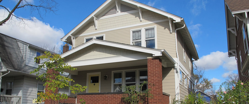 This project provided a new exterior appearance for this Grandview Heights home. The structure's original siding was replaced with new fiber-cementitious siding and trim. Dominant horizontal trim bands, exposed rafter tails and gable brackets were added to enhance the Craftsman Style of the home. A new custom designed wood fence was constructed around the backyard to create a secluded, private setting.