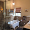 Although small in footprint, the addition adds significant space to the Master Suite. The Master Bath features a claw foot tub, glass walled shower, vaulted ceiling and is filled with daylight from three windows. The earth toned wall tile and radiant heated floor tile add visual and physical warmth to the space.