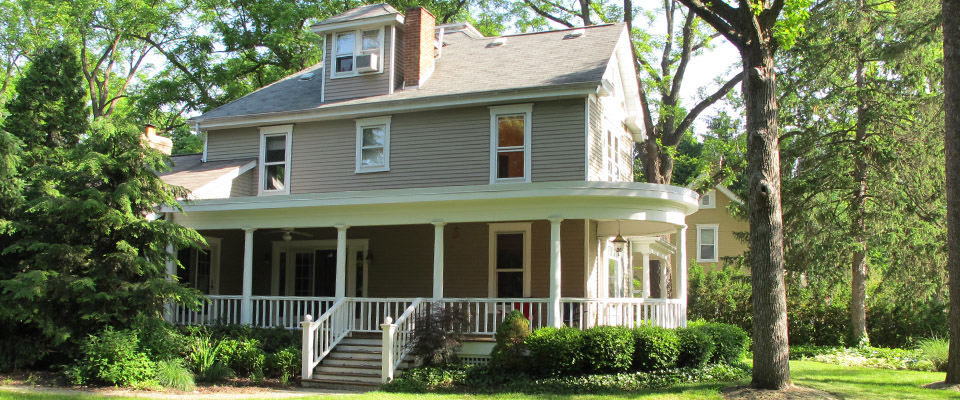 The new owners of this historic home in Old Worthington hired Rogers Krajnak Architects to design an addition that met their requirements for live / work space; to convert the use of the existing First Floor Master areas to different functions to provide more open views along the south exposure to the property's double width lot; create a new Second Floor Master Suite; and to unify the exterior sprawl of builder-designed one story additions with the original house. The solution was accomplished with a two-story addition, differentiated by vertically oriented board and batten siding, that allowed all bedrooms to be accomodated on the second floor. This allowed the previous master bedroom addition to be renovated for use as a workshop, study, mud room, and shared bath, and enabled the ceiling height to increase in the kitchen and family room.