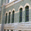 The original exterior walls were constructed of several layers of brick interconnected in a dovetail manner with the serpentine stone. The painstaking process to remove the serpentine stone on the exterior while minimizing cracks on the interior plaster included the installation of steel braces and needle beams. The original serpentine stone was methodically removed in small sections exposing the brick within the wall. New cast stone was installed in small sections anchored with stainless steel connectors and mortared in place. Subsequent sections of serpentine stone were removed followed by the installation of sections of new cast stone in multiple sequences until the stone replacement on each façade complete.