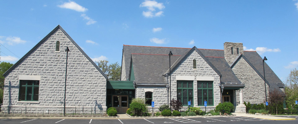 Originally constructed in 1888, this beautiful Romanesque church was in need of an elevator, accessible restrooms, more administration space and a new front door. The addition was designed to be harmonious with the massing, materials and details of the original building. Arriving at a new corner porch adjacent to the parking lot, visitors are greeted by the staff in the new administration offices and directed to the worship, education and fellowship spaces throughout the building. Original stained glass panels were removed from the south windows of the Great Room and reinstalled in new windows in the new library. The colors and patterns of these beautiful windows become a multi-layered kaleidoscope as they are reflected in the glass of the lobby, administration offices and Great Room. |