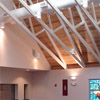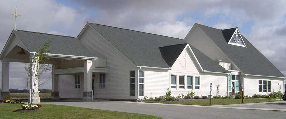 The 5,100 square foot facility for worship, fellowship, education and administration is the first phase of construction for a congregation that is relocating to an undeveloped twenty-acre site. The initial structure is placed on the site to allow for the expansion of the facility, parking areas, lawns and gardens as the congregation continues to grow. The building is designed with simple materials of painted lap siding and stone. The design includes a rhythmic composition of gabled roof forms that vary in pitch. As the master plan is ultimately implemented, the steepest roof pitch is designed for the large sanctuary that will be constructed adjacent to the initial building in the future. |
