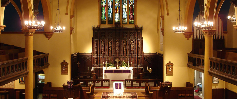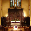 The nave was renewed with polychromatic paint finishes on the plaster columns, arches, vaults and walls. The carpet aisle runners and plywood floor patches were removed. The nave's oak plank flooring was repaired and refinished. The lighting system was upgraded to allow for more flexibility and control of lighting levels and scenes.